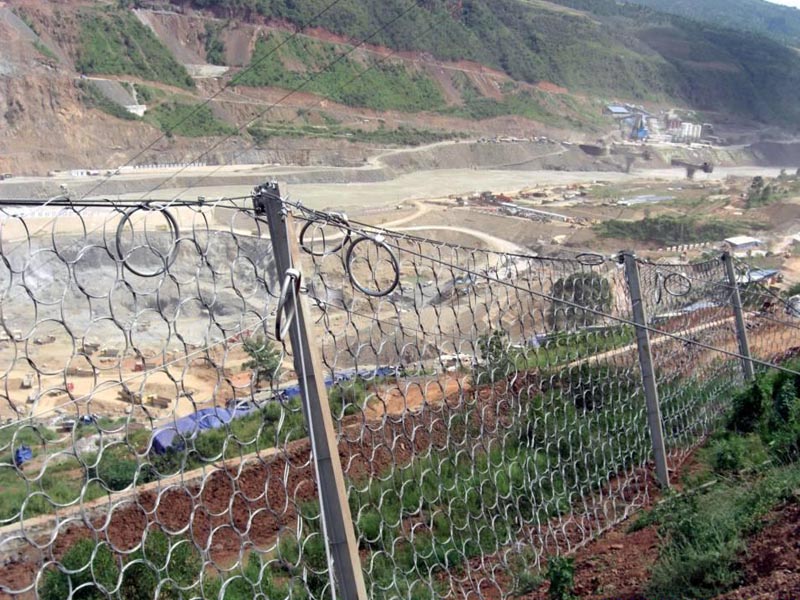 2. 落石被引導(dǎo)至制定的區(qū)域,不會堆積到防護(hù)網(wǎng)上面,防護(hù)網(wǎng)的受力只是瞬間的。窗簾式柔性防護(hù)網(wǎng)長期處于零受力狀態(tài),大大提高了其使用壽命。