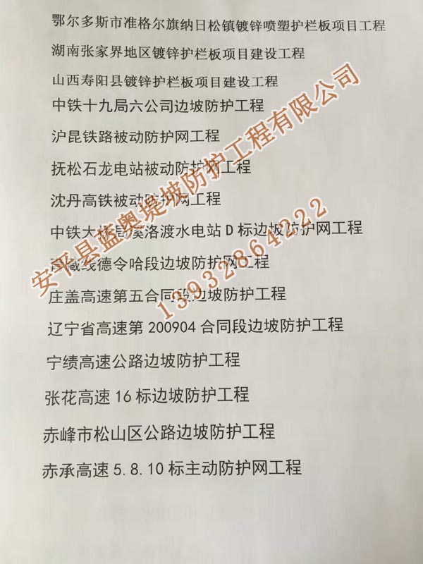 邊坡防護網部分工程業(yè)績一覽