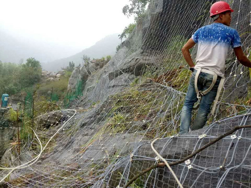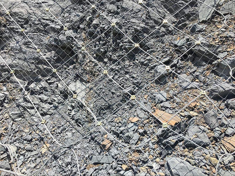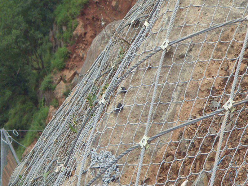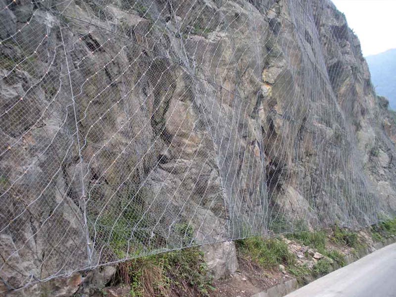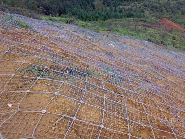 主動防護網(wǎng)是目前最有效的邊坡防護產(chǎn)品,主動防護網(wǎng)是將小片鋼絲繩網(wǎng)縫合在一起形成一張大網(wǎng),將整個山體罩住,防止落石滾落。即使非常陡峭的邊坡也同樣可以采用主動防護網(wǎng)的方式進行防護,陡峭的山坡落石一旦風化,就極有可能發(fā)生塌方、滾落,傷及到路邊的行人與車輛。采用主動防護網(wǎng)進行防護,巖石風化、滾落也只能在主動防護網(wǎng)的控制范圍內(nèi)運動。